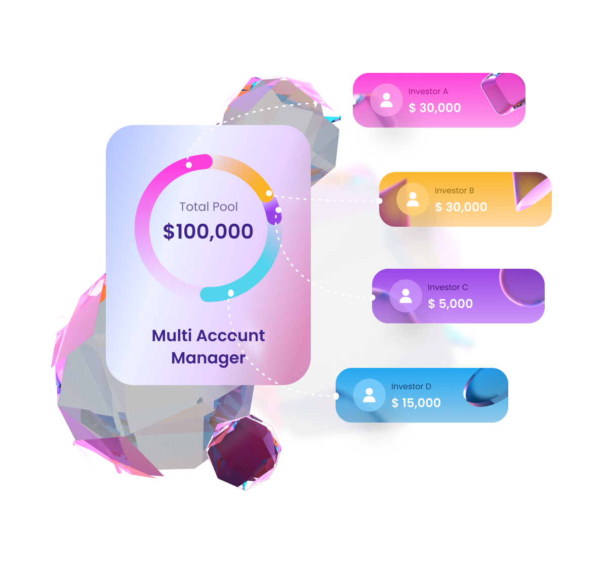 The Multi Account Manager (MAM) is suitable for Money Managers, Hedge Funds, and Family Offices. With Traze’s MAM account, investors can sign a Limited Power of Attorney with their manager of choice, agree on a performance fee, and The KF Market will act as custodian ensuring the manager receives the agreed-upon percentage all while the investor has full control of her/his account. Traze’s MAM account accommodates performance, management, and trade fees.